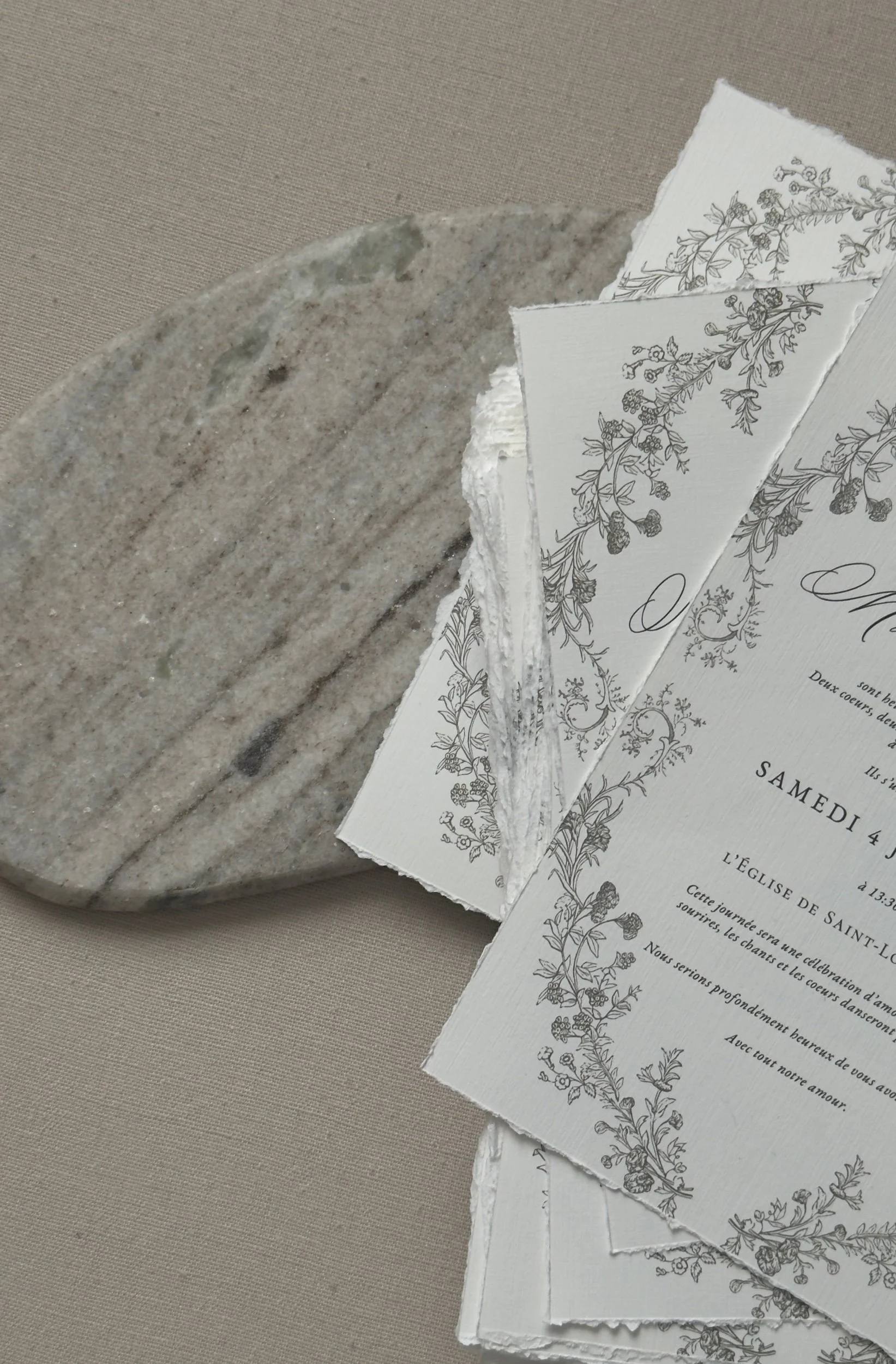 La Boutique Catégories : Tous Le Faire-part La Papeterie Le Lin & La Soie Les Détails d'Amour Le Mariage Religieux Le Baby Les Panneaux La Boutique Tous | Le Faire-part | La Papeterie | Le Lin & La Soie | Les Détails d'Amour | Le Mariage Religieux | Le Baby | Les Panneaux | Le Monogramme À partir de 150,00 € Le Majestueux À partir de 225,00 € Les Mois de Toi - Baby 39,90 € L'Embossé À partir de 210,00 € Livret de Dot 35,00 € Les Lettres d’Honneur 25,00 € Les Cartes Réservées À partir de 30,00 € Le Minimaliste À partir de 135,00 € Le Classique À partir de 150,00 € Le Fleuri À partir de 150,00 € L'Enveloppé À partir de 180,00 € Jeté de lin À partir de 120,00 € Ruban de bouquet de lin À partir de 60,00 € Bannière en lin À partir de 85,00 € Le tombé de Soie À partir de 200,00 € Cartes à découpe droite À partir de 50,00 € Cartes découpées en forme À partir de 90,00 € Cartes vintages À partir de 90,00 € Cartes raffinées À partir de 120,00 € Cartes henné À partir de 50,00 € Les certificats À partir de 25,00 € Love letters À partir de 20,00 € Les Éventails À partir de 150,00 € Newspapers À partir de 175,00 € Livrets de Voeux 45,00 € Numéros de table en lin À partir de 100,00 € Les kodaks À partir de 30,00 € Plan de table À partir de 150,00 € Panneau de bienvenue 85,00 € Sceaux de cire imprimés À partir de 100,00 € Sceaux de cire À partir de 50,00 € Panneaux Henné 85,00 € Carte cadeau À partir de 50,00 €